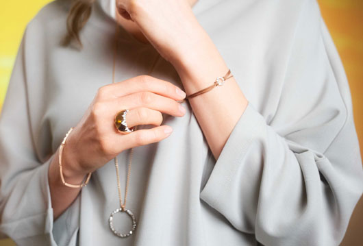 Hinter jedem Ring verbirgt sich jedoch eine Auswahl von Schmuckstücken eines Designs. So kann man ganz nach Belieben mit Einzelstücken Akzente setzen oder den Look durch Ringe, Ketten, Ohrringe, Manschettenknöpfe oder Armbänder komplett in einer Linie gestalten.