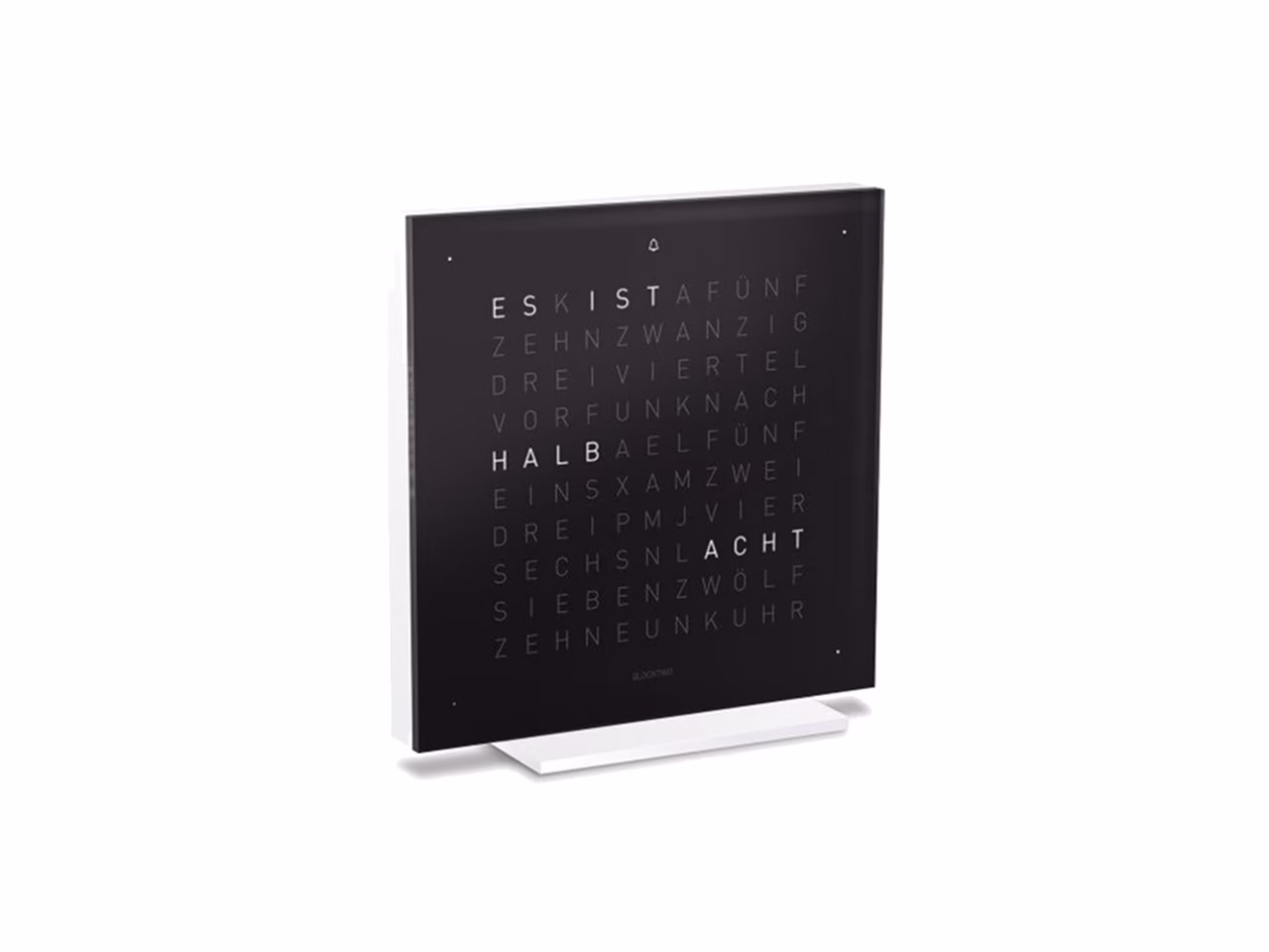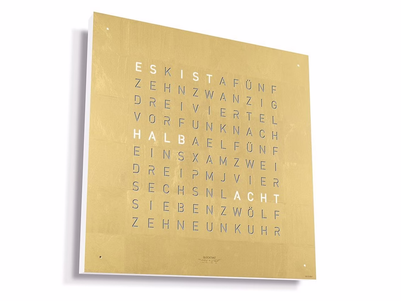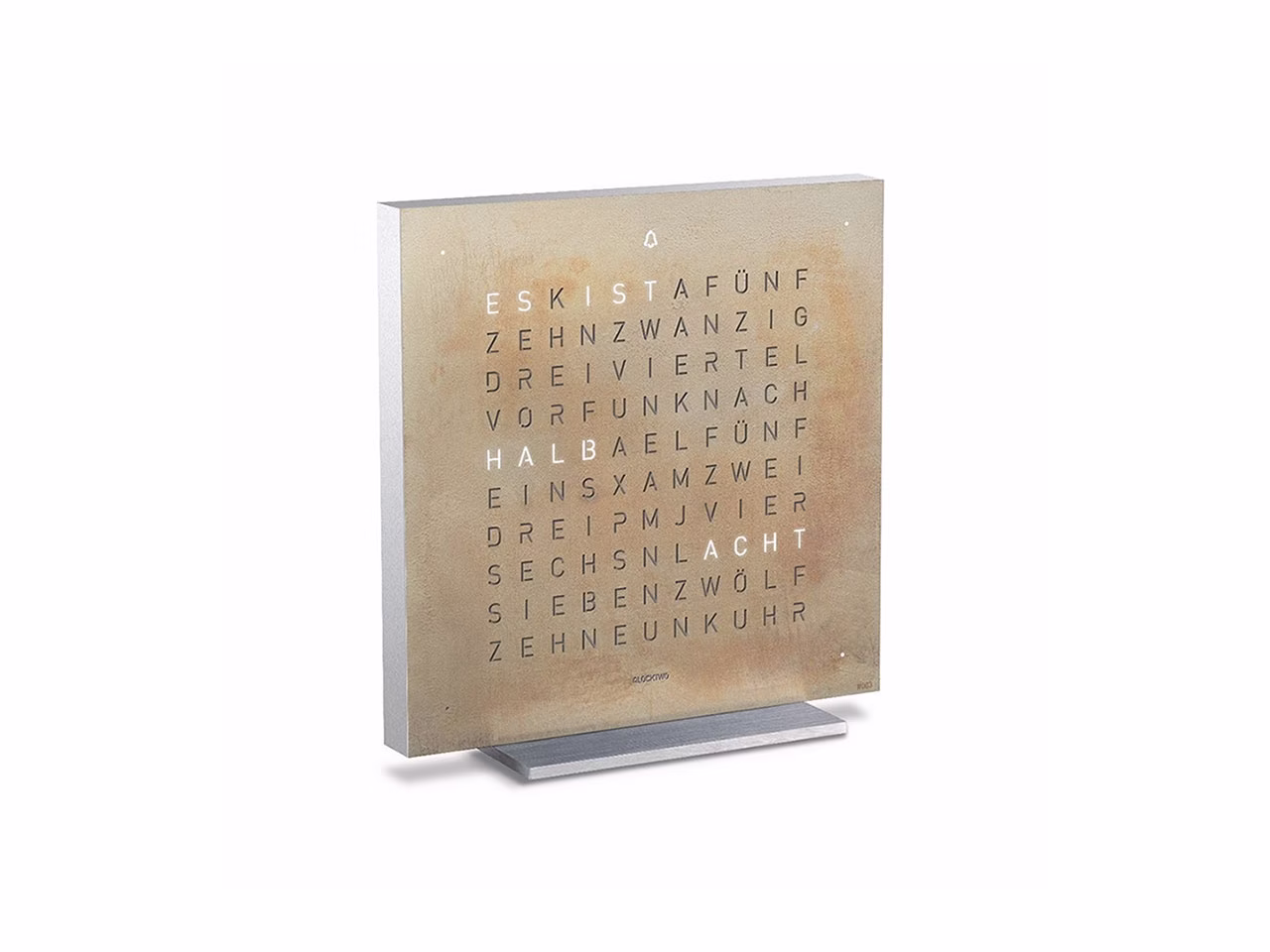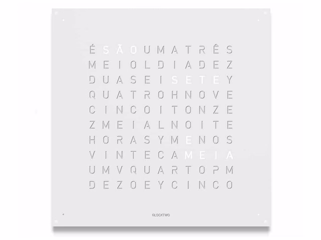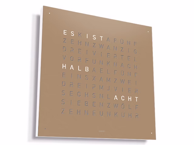 QLOCKTWO – Zeit in Worten. Die Typografische Anzeige verbindet den Moment mit dem geschriebenen Wort und macht ihn zum Statement.
