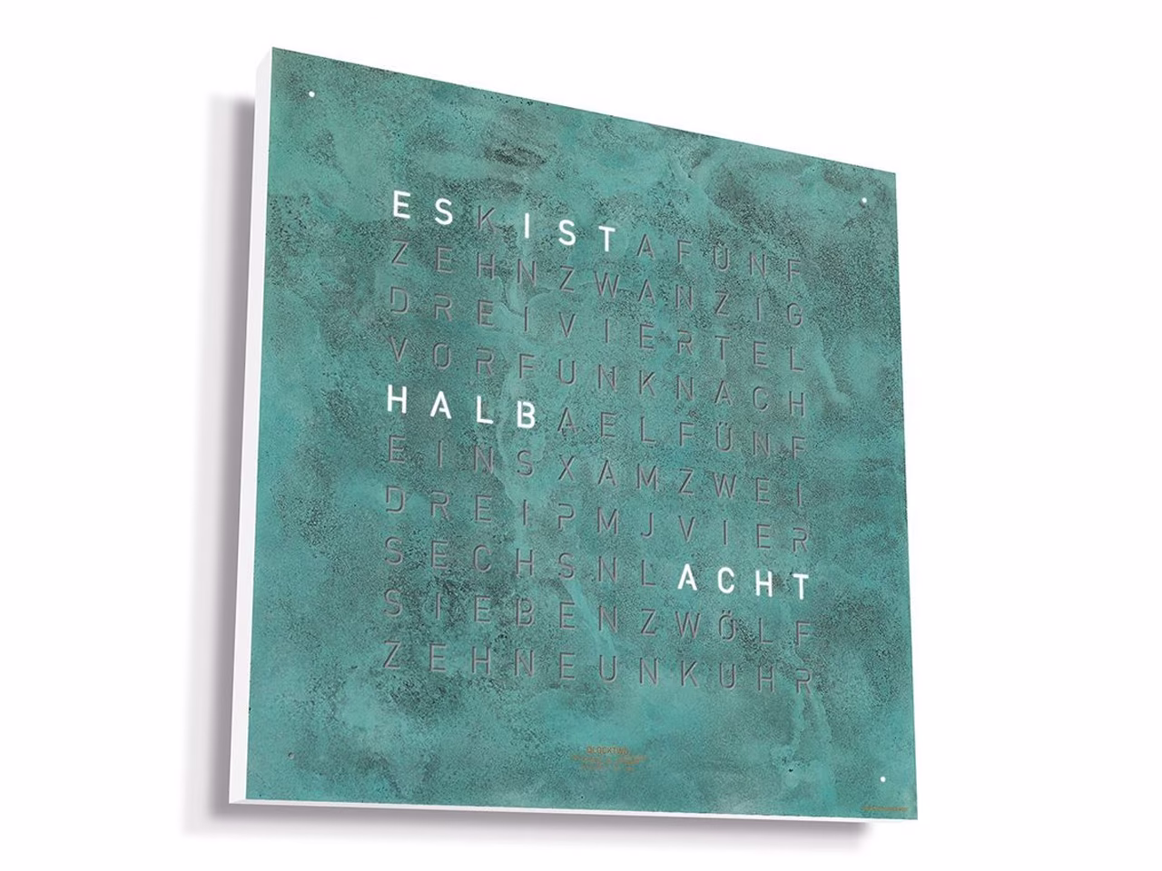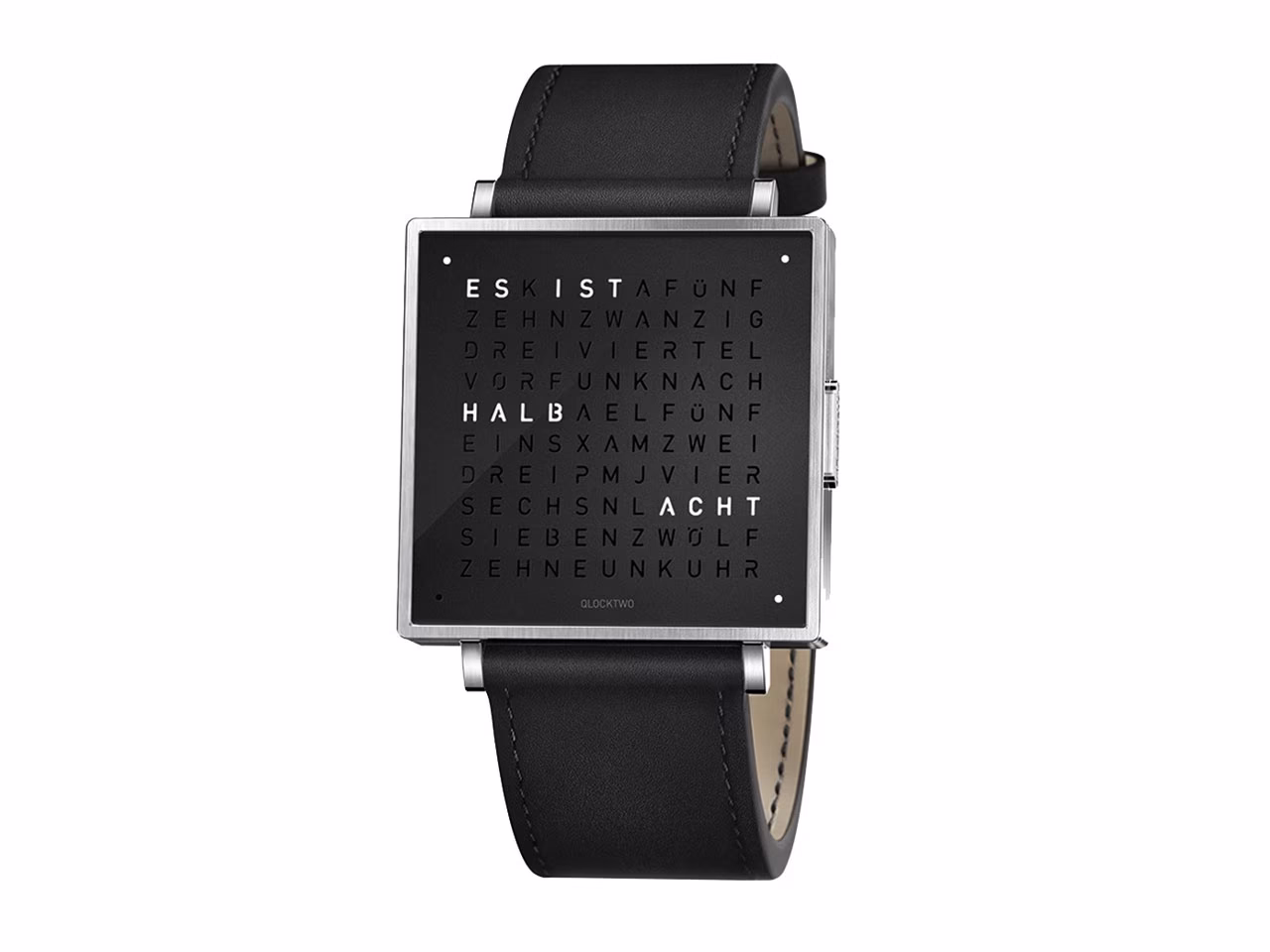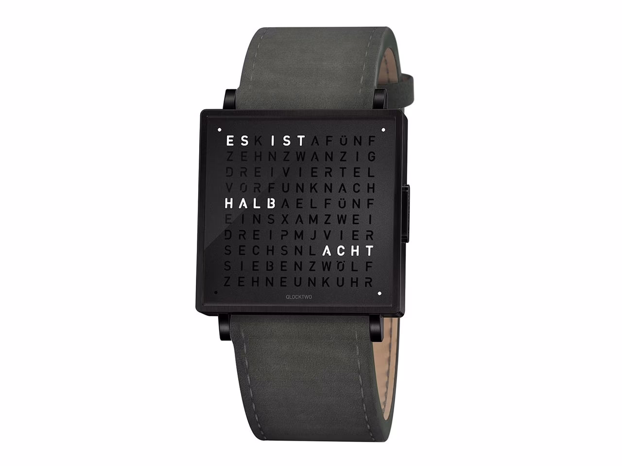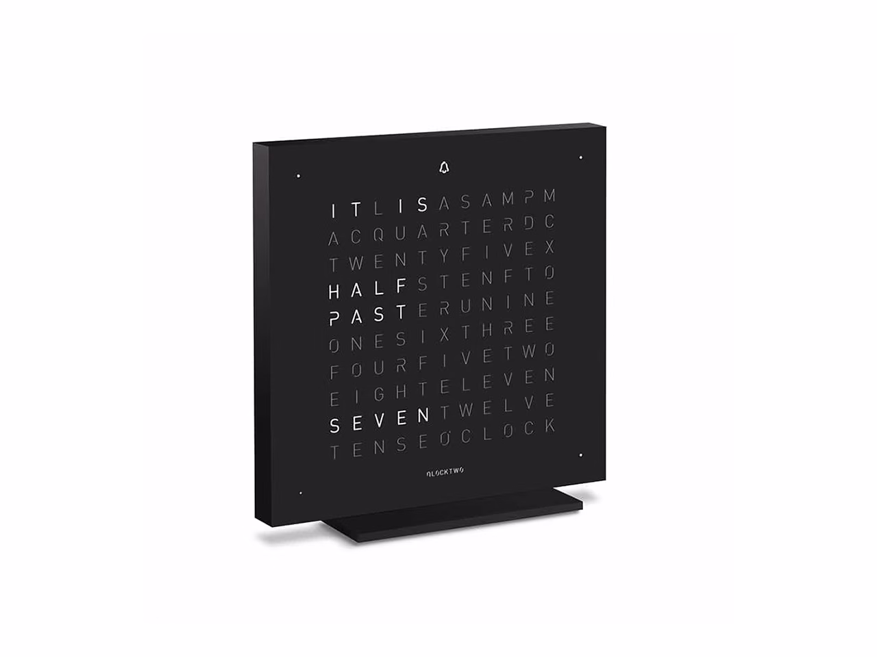 QLOCKTWO – Zeit in Worten. Die Typografische Anzeige verbindet den Moment mit dem geschriebenen Wort und macht ihn zum Statement.
